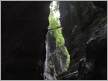 Der Weg, den wir gehen, ist von Menschenhand aus dem Felsen gehauen. Oft ist er so eng, dass zwei Personen kaum einander ausweichen können, und zudem ist er auch noch niedrig. Wo immer man hinschaut - überall ist Wasser. Es stürzt in schmalen Schleiern vom Schluchtrand herab, rieselt von den Wänden, tropft uns in den Nacken, sammelt sich in Pfützen auf unserem Weg und macht ihn rutschig. Auf einer Strecke von 100 Metern führt der Weg direkt durch den Fels, ein Tunnel mit "Fenstern" zum Wildbach an der Stelle, an der 1991 die Gesteinsbrocken herabgestürzt sind. Das Ergebnis war eine Stauung oberhalb des Sturzes, mit der Folge, dass sich die Partnach einen neuen Weg suchen musste. Da der ursprüngliche Steig für die Besucher zerstört war, sprengte man den Tunnel in den Fels, durch dessen Öffnungen wir das Naturschauspiel heute ohne Gefahr bestaunen können. Weitestgehend ohne Gefahr, sollte ich sagen, denn natürlich kann niemand garantieren, dass es nicht erneut einen Steinschlag geben wird.