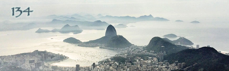 An der Bergstation verlassen wir die Gondel, und kaum haben wir die Plattform betreten und schauen auf die Stadt, da wissen wir, welch große Dummheit wir mit unserem ursprünglichen Zögern um ein Haar begangen hätten. Wieder ein Ausblick auf eine unvergleichliche Kulisse, ein anderer natürlich als von der Christusstatue, aber ebenfalls überwältigend! Es ist, als blickten wir auf ein von einem großen Meister entworfenes Gemälde - eine Komposition aus blauem Meer, weißen Sandstränden und grünen Hügeln, zwischen die sich die Stadt schmiegt. Dazu der Christus vom Corcovado, der trotz des nicht optimalen Wetters gut zu erkennen ist. Auf einer Landzunge nahe dem Stadtzentrum entdecken wir den Flughafen Santos-Dumont, den kleineren der beiden Flughäfen von Rio, der unter Piloten als einer der schwierigsten weltweit gilt. Wegen des nur vier Kilometer von der Landebahn entfernten Zuckerhuts ist ein Standard-Anflug hier nicht möglich. Stattdessen fliegen die Piloten zunächst auf den Berg zu und wechseln dann mit einer Linkskurve von 180 Grad die Richtung, bevor sie nur wenige Sekunden später auf der wegen des Wassers ringsum äußerst knapp bemessenen Landebahn aufsetzen.