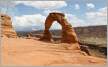Und dann stehen wir vor dem berühmtesten aller Bögen des Nationalparks, und schon auf den ersten Blick ist uns klar, dass er eine solche Bezeichnung verdient hat. Die Rede ist vom Delicate Arch. Rund 20 Meter hoch und etwa 70.000 Jahre alt ist der Bogen aus rotem Sandstein, und schon von der Form her ist er eine eindrucksvolle Erscheinung. Doch das ist es nicht allein, worauf sein Ruhm sich gründet. Ganz wesentlich ist auch der Hintergrund, vor dem er seine Wirkung entfaltet - die fast 4.000 m hohen Berge der La Sal Mountains mit Schnee auf den Gipfeln, was in dieser wüstenähnlichen Landschaft beinahe skurril anmutet. Weil dieses Ensemble so eindrucksvoll ist, haben die Verantwortlichen in Utah es auf das Autokennzeichen ihres Bundesstaates gesetzt, auf dass jedermann immer wieder sehe, was Utah zu bieten hat. Bei den Touristen, die auf einem nicht ganz leicht zu begehenden Pfad zum Delicate Arch hinpilgern, um sich anschließend unter ihm ablichten zu lassen, ist diese Botschaft angekommen: ein perfekt geformter Steinbogen vor einem grandiosen Hintergrund, und unter dem Bogen ein kleiner Mensch - das ideale Urlaubsfoto für einen selbst und für die Lieben daheim. Laut Reiseführer gehört der Delicate Arch zu den am meisten fotografierten Naturdenkmälern der Welt, und wenngleich Reiseführer oft schummeln und ihre jeweiligen Inhalte in den Rang von Weltsensationen erheben - in diesem Fall dürften sie mit ihrer Behauptung durchaus richtig liegen.