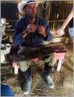 Während wir mit unserem Guide unterwegs sind, seinen Erklärungen lauschen und immer mal wieder anhalten und fotografieren, steigt die Sonne allmählich höher am Himmel, es wird heiß und heißer, so dass wir froh sind, als Daniel irgendwann auf das Haus eines Bauern zuhält. Richtiger: auf dessen Scheune, denn in der trocknen die geernteten Tabakblätter, über die wir etwas erfahren sollen. Manuel, der Bauer, wartet bereits auf uns. Er ist um die 30 Jahre alt, schlank und kräftig und zudem äußerst eloquent, wie wir schnell feststellen. Auf Spanisch - von Daniel ins Englische übersetzt - erläutert er uns seine Arbeit. Er beschreibt das Trocknen der Blätter, geht auf ihre Fermentierung ein und was dabei alles beachtet werden muss und beginnt anschließend mit der Herstellung einer Zigarre, wobei er uns jeden Schritt geduldig erklärt. Drei unterschiedliche Arten von Blättern werden dafür benötigt, erzählt er: das innere - die Einlage - für den Geschmack, das darüber liegende, um der Einlage eine Form zu geben und schließlich außen das Deckblatt, das alles zusammenhält. Danach brauche es nur noch ein wenig Kleber, um das Blatt haften zu lassen, und die Zigarre sei fertig. Ob wir mal kosten wollten? Natürlich wollen wir das, und so pusten wir einer nach dem anderen ein paar Wölkchen in die Luft, husten dabei - die Nichtraucher - oder gehen - die Raucher - die Sache mit lässiger Routine an. Ob uns die Zigarre denn schmecke, will der Bauer wissen. Nun ja, Karin und ich sind Nichtraucher, unser Ding ist das nicht, aber vielleicht würden sich ja unsere Bekannten daheim über eine Zigarre als Mitbringsel freuen. Weshalb wir zuschlagen und gleich zwei Dutzend davon in unserem Rucksack verstauen, zu einem Preis allerdings, der mit ziemlicher Sicherheit überhöht ist. Doch der Bauer ist freundlich zu uns, da wollen wir mit unseren CUC - das ist die Währung, mit der wir Touristen in Kuba bezahlen - nicht geizen.